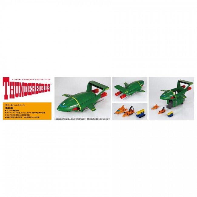 60th Anniversary of Domestic Broadcast! The Classic “Thunderbirds” Returns!! First broadcast domestically in 1966, “Thunderbirds” celebrates its 60th anniversary of domestic broadcasts in 2026. The oversized Thunderbird 2 model, originally sold back then, is being reissued. The removable container can store the included Thunderbird 4, Jet Mole, and Magnetic Tractor. This nostalgic plastic model kit brings back memories of those days. ・Includes water-slide decals ・Removable container ・Includes Thunderbird 4, Jet Mole, and Magnetic Tractor ・Rescue vehicles can be stored inside the container ・Can be pushed along using wheels ・Size: Approx. 250mm (10.6") in length ・Water-slide decals included ※Images show a prototype. Actual product may differ. ※This is a plastic model kit. Tools are required for assembly. [Plastic Model] Brand AOSHIMA Series Thunderbirds No.20 Scale Non Thunderbirds TM and (C) ITC Entertainment Group Limited 1964, 1999 and 2026. Licensed by ITV Studios Limited. All rights reserved. (From Aoshima Bunka Kyozai website)