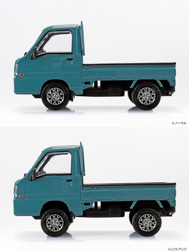 Even light trucks want to look stylish! <New Mold Added> The Subaru Sambar, famously known as the “Porsche of farm roads” for its rear-wheel drive, is now a realistic plastic model kit. This time, we're adding a custom wheel specification. It can be assembled with a choice of standard ride height. ・Easy-to-build model with 26 parts ・Decal reproduction for areas requiring color separation ・Optional assembly for standard ride height ・Body Color: No.05CU-BG Blue Gray ・Wheel Color: Chrome ■No Painting Required The body color is achieved through plastic material coloring, eliminating the need for painting. The glossy body finish is a highlight. ■ No Adhesive Required The snap-fit construction eliminates the need for glue. ■ High Fidelity with Minimal Parts Achieves high fidelity at 1/32 scale despite a simplified kit. ※Images show prototypes. Actual product may differ. ※This is a plastic model kit. Tools are required for assembly. ※Please note wheel colors vary by vehicle model. ※SUBARU Co., Ltd. Application Pending [Plastic Model] Brand AOSHIMA Series Rakupura Snap Kit No.05CU-BG Scale 1/32 (From Aoshima Bunka Kyozaiku website)