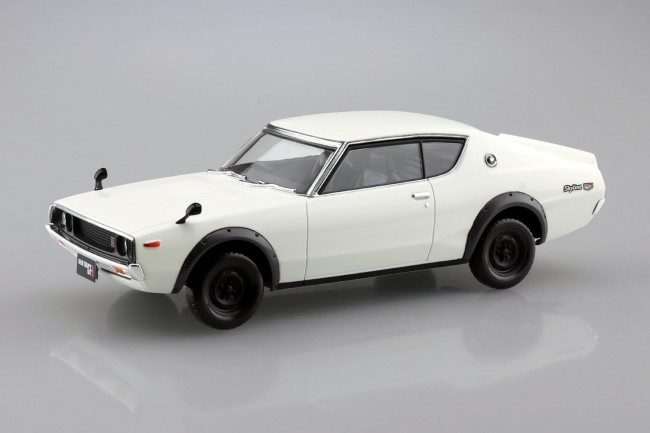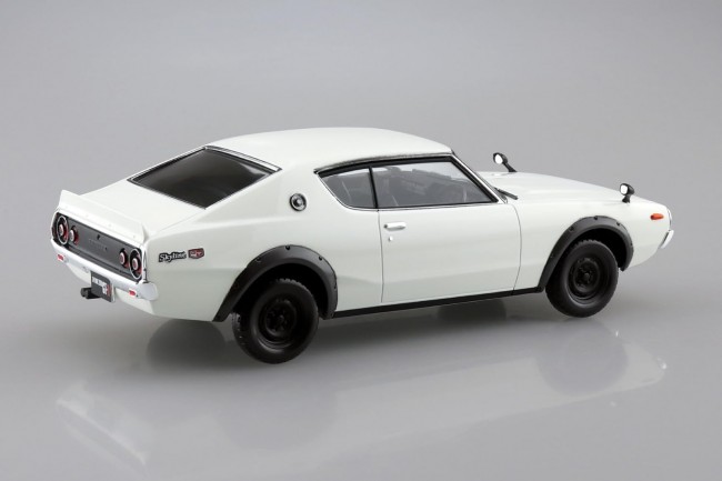 The Phantom GT-R Arrives! The legendary second-generation Skyline GT-R, commonly known as the “Kenmeri GT-R,” is perfectly recreated in its ultimate form. This kit offers a choice between stock ride height and a lowered specification. ・Easy-to-build model with 25 parts ・Decal application for areas requiring color separation ・Optional assembly for lowered specification ・Body Color: No.24-WE White ■ No Painting Required Body color is achieved through plastic material coloring, eliminating the need for painting. The glossy body finish is a highlight. ■ No Adhesive Required A snap-fit construction eliminates the need for glue. ■ High Fidelity with Minimal Parts Achieves high fidelity at 1/32 scale despite kit simplification. ※ Images show a prototype. Actual product may differ. ※This product is a plastic model kit. Tools are required for assembly. ※When assembled with the lowered suspension specification, tire rotation may be restricted. ※Nissan Motor Co., Ltd. - Patent Pending [Plastic Model] Brand AOSHIMA Series Rakupura Snap Kit No.24-WE Scale 1/32 (From Aoshima Bunka Kyozai website)