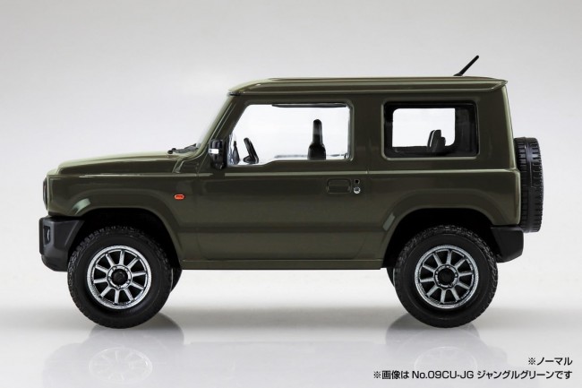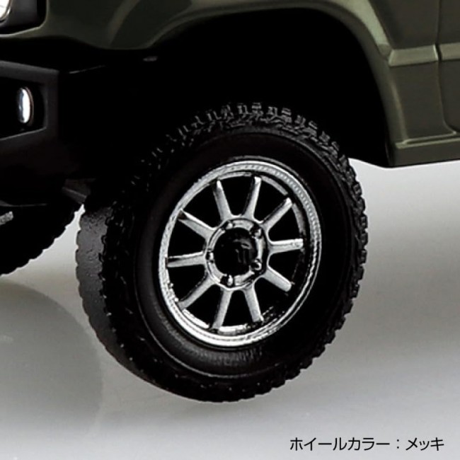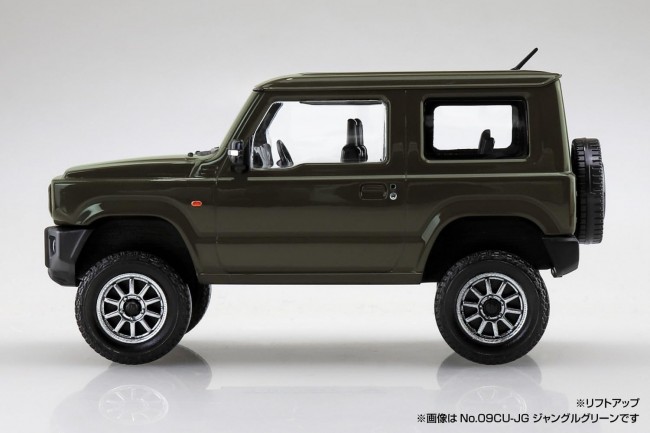 Custom Lift-Up Spec, Powerful Jimny! The Suzuki Jimny, a full-fledged off-roader within the kei car category, underwent a full model change to its fourth generation and debuted in 2018. Developed under the concept of “a compact 4x4 recognized worldwide, combining genuine 4WD performance with functional beauty without excess,” it retains the basic structure while featuring a newly developed ladder frame, the backbone of the body, and a switch to the R06A engine. The angular body form was designed with the theme of “professional tools,” pursuing not only functionality such as ensuring a wide field of view and improving load capacity, but also comfortable livability and ease of everyday use. ・Easy model with 31 parts ・Parts requiring separate painting are reproduced with stickers ・Can be assembled to normal vehicle height ・Body Color: No.09CU-JG Jungle Green ・Wheel Color: Plated *Image is a prototype. Actual product may differ. *This product is a plastic model kit. Tools are required for assembly. *Please note that wheel colors differ depending on the model. *Supervised by Suzuki Motor Corporation [Plastic Model] Brand AOSHIMA Series Rakupura Snap Kit No.09CU-JG Scale 1/32 (From Aoshima Bunka Kyozaim website)