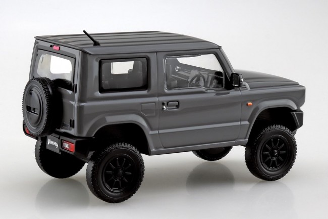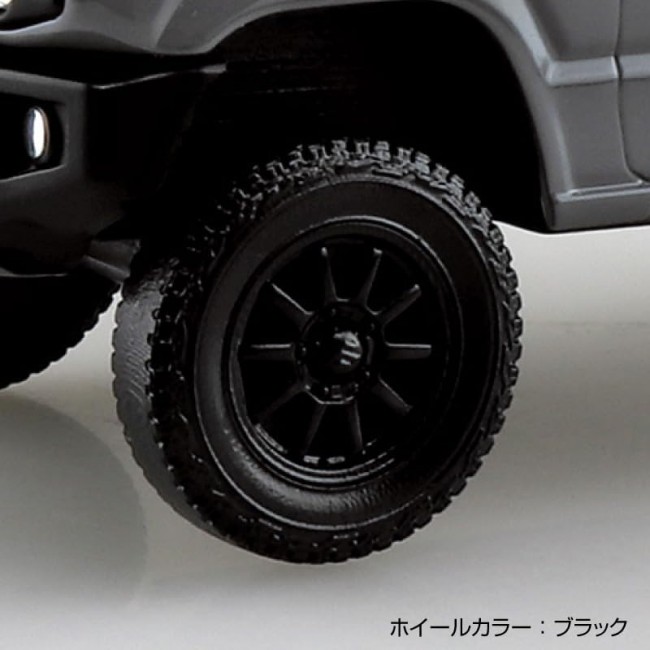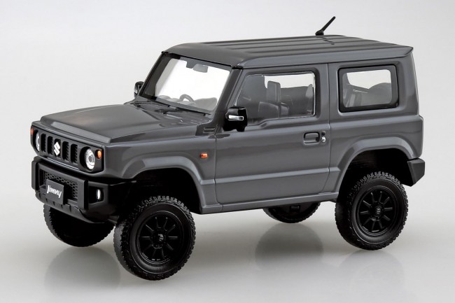 Custom Lift-Up Spec, Powerful Jimny! The Suzuki Jimny, a full-fledged off-roader within the kei car category, underwent a full model change to its fourth generation and debuted in 2018. Developed under the concept of “a compact 4x4 recognized worldwide, combining genuine 4WD performance with functional beauty free of excess,” it retains the basic structure while featuring a newly developed ladder frame, the backbone of the body, and a switch to the R06A engine. Its angular body form was designed with the theme of “a professional's tool,” pursuing not only functionality like ensuring wide visibility and increased cargo capacity, but also comfortable habitability for everyday usability. ・Easy-to-build model with 31 parts ・Decal application required for color separation ・Can be assembled at standard ride height ・Body Color: No.09CU-MG Medium Gray ・Wheel Color: Black ※Images show a prototype. Actual product may differ. ※This is a plastic model kit. Tools are required for assembly. ※Please note wheel colors vary by vehicle model. ※Under supervision of Suzuki Motor Corporation [Plastic Model] Brand AOSHIMA Series Rakupura Snap Kit No.09CU-MG Scale 1/32 (From Aoshima Bunka Kyozai website)