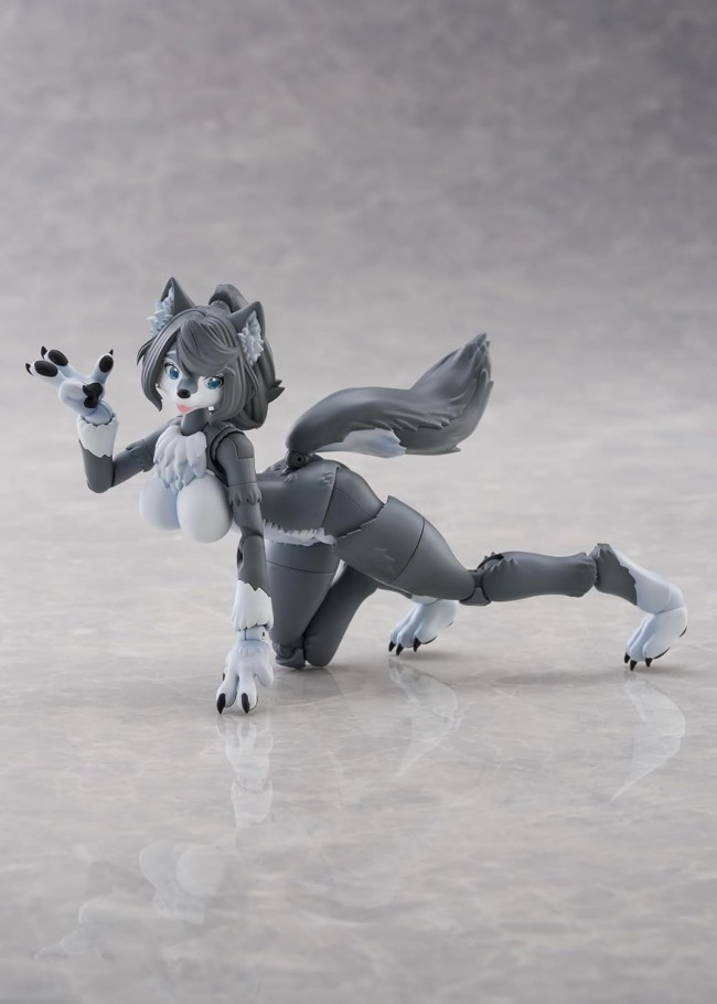 Customize your ideal beast. The third main kit in the Kemoplastic series is the “Grey Wolf”! The Grey Wolf, also known as the Eurasian Wolf, is a representative wolf species widely found across the Northern Hemisphere. While coat colors vary by habitat and individual?including grey, black, white, and brown?this kit features molding in two shades: dark grey and light grey. It features larger fur and tail than the Japanese wolf, along with loosely curled hair and a ponytail. ・Color-separated snap-fit kit model requiring no glue ・Main body features “High Kemono” styling, with interchangeable “Medium Kemono” face and limb parts included ・Includes pre-painted face. The “High Kemo” specification uses a “movable eyeball” system. ・Includes 4 types of “High Kemo” hand parts and 5 types of “Medium Kemo” hand parts. ・The “High Kemo” leg articulation employs the “Kemo-Fling System” to enhance action pose reproduction. ・Combine with separately sold main kits and optional parts for customization to your preference. 【Product Specifications】 Scale: Non-scale Body height: Approx. 155mm Material: PS/ABS/PVC [Plastic Model] Brand AOSHIMA Series Kemo-Pura No.KP-03R Scale Non (C) AOSHIMA BUNKA KYOZAI Co., Ltd. (From the Aoshima Bunka Kyozai website)