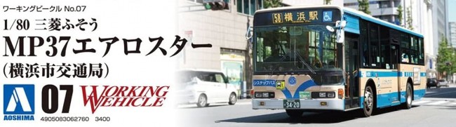 Aoshima 1/80 Working Vehicle No.7 Mitsubishi Fusou MP37 Aero Star (Yokohama Traffic Bureau) japan NEW