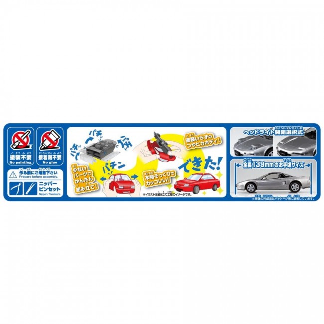 Plastic model [Scale] 1/32 Honda's proud domestic supercar! [Product Description] You can easily have the domestic supercar of your dreams at your fingertips! Completely new mold Easy model with only 32 parts. [What is Rakuraku Plastic Snap Kit?] No painting required! By reproducing the body color by coloring the plastic material, painting is no longer required. The glossy body is also a highlight. No need for glue No glue is required by adopting the snap-in type. High reproducibility with fewer parts High reproducibility in 1/32 scale has been realized while simplifying the kit. Body color: No.19-SS Sebring Silver