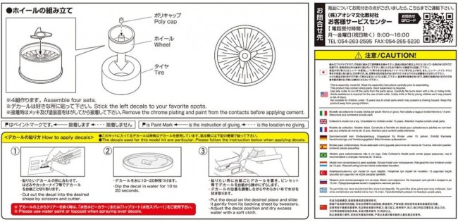 Tire and wheel parts for car models. Pirelli P6 tires included. [Plastic model]. Brand AOSHIMA Series The Tuned Parts No.110 Scale 1/24 (From Aoshima Bunka Kyozai website)