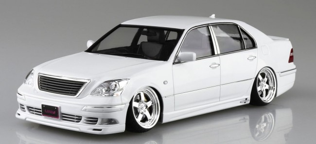 The ultimate in VIP! Front bumper Side steps Rear bumper Rear wing Front Grill KB sniper muffler 20-inch tires and aluminum wheels Window frame masking stickers included The images shown are prototypes. [Plastic model]. Brand AOSHIMA Series The Tuned Car No.70 Scale 1/24 (From Aoshima Bunka Kyozai website)