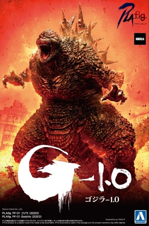 That's Godzilla... I have some special news. We have some extraordinary news. PLAfig." is a newly born brand that brings together all of Aoshima's plastic modeling technologies and aims to create overwhelmingly sculpted plastic models. The first model of the brand will be “Godzilla (2023)” from “Godzilla-1.0”. Based on the prototype created by up-and-coming creature sculptor Shuzo Kanimushi, the figure dynamically reproduces Godzilla in a fixed pose as he attacks Ginza from Tokyo Bay, despite its compact size. The design of the figure does not compromise the sculpting, allowing you to enjoy the beauty of Godzilla's form simply by assembling the figure. The package is a newly illustrated by “TAKA-F”. The package art is a gorgeous specification that allows you to feel the power of Godzilla as well. Godzilla suddenly appears in scorched Japan. Please enjoy this symbol of despair, which has been sculpted in a 360 degree angle, by assembling it yourself. [PR Points] ・Completely new mold ・Organic design of Godzilla is reproduced in plastic model kit based on the prototype created by “Shuzo KANIMUSHI” ・Biological and dynamic posing that seems to start moving at any moment ・Realistic modeling that reminds us of the movie condensed into 13cm in height ・Newly illustrated by "TAKA-F Package illustration: [Product Specifications] Scale: non-scale Size: approx. 130mm in height Material: PS Sculpting and painting example: Shuzo Kanimushi Package illustration: TAKA-F *The image is a prototype painted and assembled for sample purposes. It may differ from the actual product. *This product is a plastic model kit. Adhesives and tools for models are required for assembly. [Plastic model] Brand AOSHIMA Series PLAfig. No.PF-01 Scale Non TM & (C) TOHO CO., LTD. (From Aoshima Bunka Kyozai website)