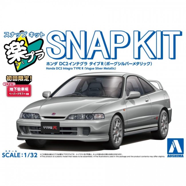 Aoshima 1/32 Raku-Pla Snap Kit No.22-VS Honda DC2 Integra Type R (Borg Silver Metallic) japan NEW