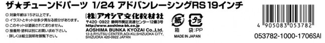 Aoshima 1/24 Advan Racing RS 19 inch plastic kit (4 wheels & tires) japan NEW