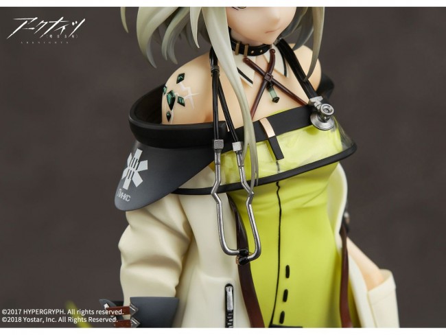 From the popular smartphone game "Ark Knights" by Yostar and HyperGryph comes a figure of "Kelsey," one of the upper management of Lodoss and the leader of the medical business! The figure is a perfect reproduction of the small items used to treat him as a doctor, such as the syringe and stethoscope, as well as his cool expression and the shoulder where the source stone crystals appear. Furthermore, the metallic color of the zipper and the enamel feel of the shoes are also carefully reproduced with painted textures. The transparent parts of the outfit, reproduced using a clear material, are also a must-see! The stand is a vignette-style stand with a pillar of ore piercing the ground, emphasizing the world view. Special paints are utilized, allowing the figure to be viewed from different angles, allowing the viewer to enjoy a variety of color expressions. Please welcome the mysterious and cool "Kelsey" into your possession! [Ark Knights Kelsey] Title Ark Knights Specifications Painted PVC & ABS complete figure 1/7 Scale Figure Size Approximately 26.5cm in height (including stand) Perks: Acrylic key chain (to be included in the package) Sculptor Ichidan Sculptor Naomi Color by Luu (C) 2017 HYPERGRYPH. (C) 2018 Yostar, Inc.