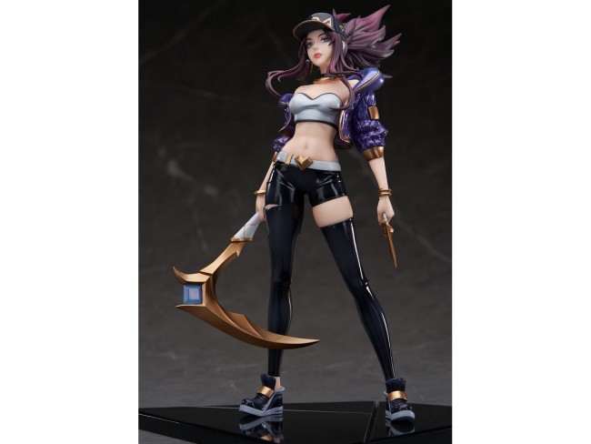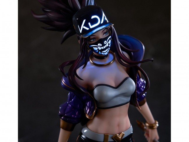 From the PC online game "League of Legends" comes a figure of "Akari" as the virtual girl group "K/DA"! Akari's sexy and revealing outfit has been carefully reproduced with a special attention to detail in the paint job. The pearl painted and gradated hoodie and the enamel bottom are definitely worth taking a look at. The metallic texture of the accessories and weapons, the wrinkles on the clothes, and even the jewelry on the weapons and the microphone made of clear material have been faithfully reproduced. The mask pattern and cap letters are made of fluorescent paint and emit light when illuminated with a black light, creating a mysterious atmosphere. The special pedestal can also be displayed together with the "K/DA Ary" that is currently on sale! Please enjoy it at hand! Size: Approximately 25.4cm in height (including the pedestal) Material: PVC & ABS PVC & ABS The following are the benefits that come with the first shipment only: Mini projector (uses 3 AAA batteries / sold separately) Sculptor: APEX Sculpting Supervisor: alive Color: Yama Hai (C) 2023 Riot Games, Inc.