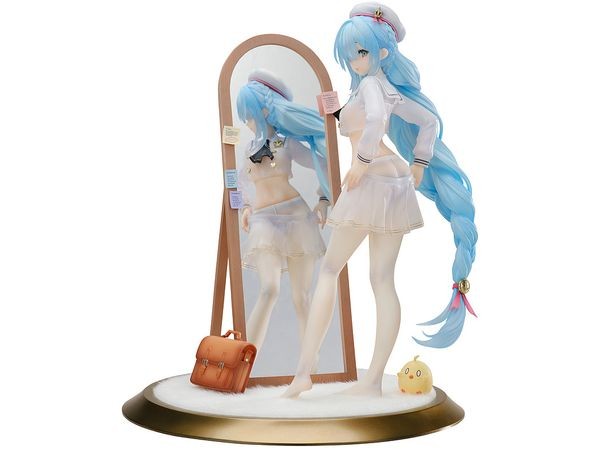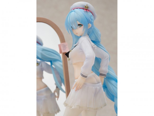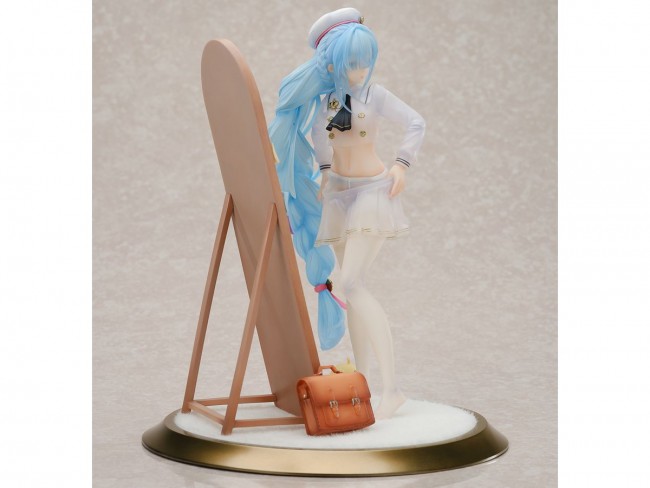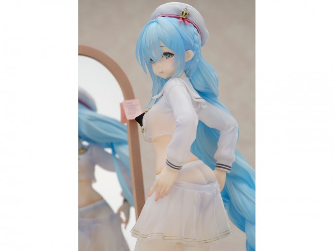 From the popular app game “Azure Lane” by Yostar, the J-class destroyer “Jenas” belonging to Royal has been sculpted as a figure in the “Fitting Love” dress-up version! The figure is a cut-out composition of her changing in front of a mirror, and the back and manjuu at her feet can be placed as desired. Her cool outfit and characteristic blue hair are made of clear material, giving the figure a transparent finish. The mirror has a mirrored surface and the fur on the pedestal is made of cloth. She also comes with two replaceable expressions, a smiling face and a sulking face, so you can display her however you like. We hope that all commanders will welcome her and enjoy the slightly awkward figure of Jenas at their fingertips! [1/7 Azur Lane: Janus Fear of Changing... Clothes Ver.] Series Azur Lane Specifications Painted PVC & ABS complete figure 1/7 Scale Figure Size Approximately 24cm tall (including stand) Special bonus color paper (enclosed in the package) (C) 2017 Manjuu Co.,Ltd. & YongShi Co.,Ltd. All Rights Reserved.