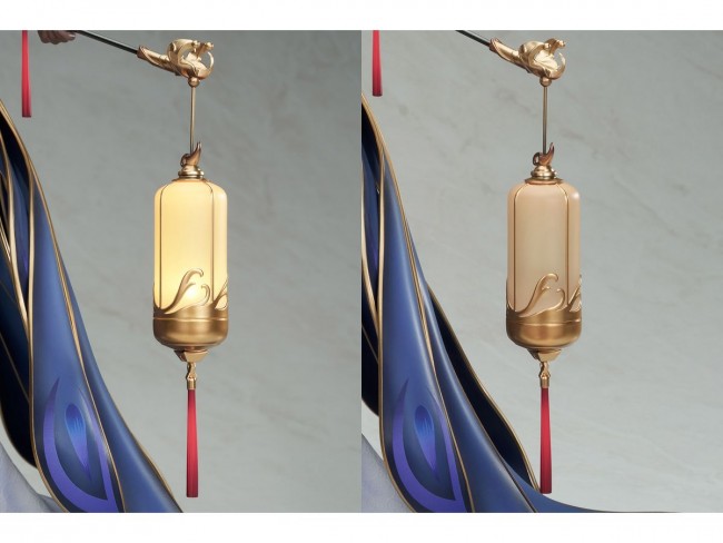 From Yostar's popular app game “Azure Lane” comes a sculpture of “Chinkai” in her modified form! Standing on a reef with a lantern in a graceful posture, she waits for her commander, and through the cavernous structure of her outfit, we can directly see Chinmi's voluptuous body! The details are as meticulously sculpted as ever, and the gold-plated accessories and enameled hairpins show their luster and shine in a stream of light and shadow. Furthermore, the lantern can be lit by the built-in LED, creating a fantastic atmosphere! Choose your favorite expression with the replaceable “embarrassed face” expression part. Create your own special future with the new “Chinmi”! Button batteries (sold separately) are required to light the LEDs. [Azur Lane: Chen Hai Kai] Title "Azur Lane" Specifications Painted PVC & ABS 1/7th scale figure Size Height: approx. 31cm (including stand) Special bonus included with the first shipment only. Colored paper (to be included) (C) 2017 Manjuu Co.,Ltd. & YongShi Co.,Ltd. All Rights Reserved. (C) 2017 Yostar, Inc.