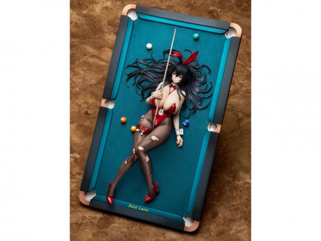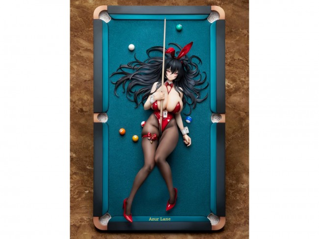 From Yostar's wildly popular app game “Azur Lane,” the ‘Daifeng’ figure arrives in her “Rosa Y?j?” costume! She's captured in a bold pose, reclining on a pool table while clad in a bunny girl outfit. Her subtly flushed expression and the gracefully flowing hair sculpt further enhance her charm. The leather outfit features a glossy paint finish, while the glimpse of bare skin through torn stockings adds a subtle sensuality. The billiard table uses authentic materials, and the base with adjustable legs allows for a realistic atmosphere and flexible display options. Additionally, interchangeable expression parts and leg parts are included, letting you display her in your preferred scenario. Add this provocative and captivating Daifu to your collection. 【Azur Lane: Taihou Fun on the Baize Ver.】 Title 『Azur Lane』 Specifications Pre-painted PVC & ABS completed figure 1/7 scale figure Size Figure height: approx. 27cm (10.7in) Base: approx. 34x20cm (13.4x7.9in) First-run bonus included only with initial production runs (Bonus may not be included even with early orders due to shipping sequence). Life-size tapestry (70x160cm) (Scheduled for separate packaging) (C) 2017 Manjuu Co.,Ltd. & YongShi Co.,Ltd. All Rights Reserved. (C) 2017 Yostar, Inc. All Rights Reserved.