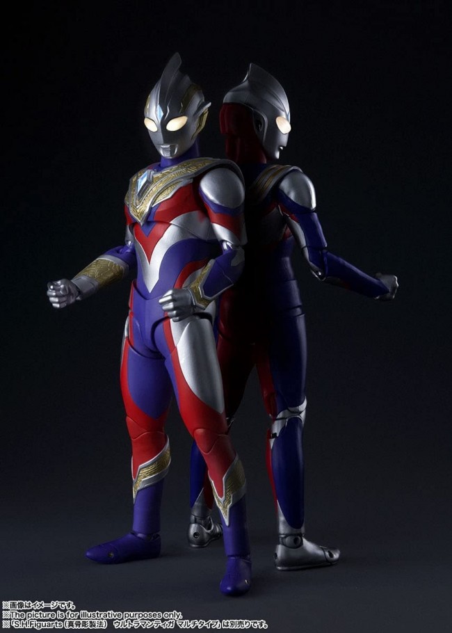 The basic form of Ultraman Trigger, "Ultraman Trigger Multi Type", has been transformed into S.H. Figuarts. With the cooperation of Tsuburaya Productions' molding division, LSS, the figure has been sculpted in the image from the play. The distinctive purple, silver, and red coloring is reminiscent of Ultraman Tiga. The gold coloring on the chest, arms and shins has been thoroughly reproduced in detail. Four interchangeable wrists are included for each side. Four interchangeable wrists are included for each side of the figure, and the open wrists can be used to recreate the Zeppelion Ray. The drawer structure of the hip joint allows for a cool kneeling pose. Set Contents Main body Four replaceable wrists (left and right) Replacement color timer (red)