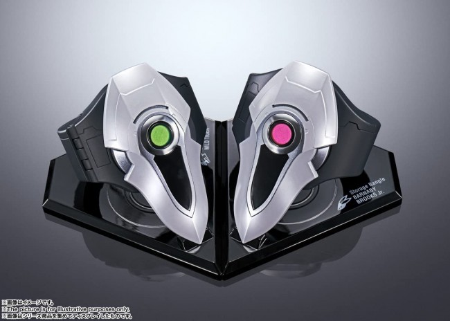 Action Figure (Completed / Movable) From "TIGER & BUNNY 2" comes a 1/1 scale figure of "Storage Bangle" by PROPLICA! Not only is the figure realistically sculpted and colored, but Toratoru and Barnaby's Storage Bangle can also communicate with each other via infrared communication, allowing you to enjoy the interaction between the two! The OP, suit-wearing scene sounds, background music and character voices from "TIGER & BUNNY 2" are built in. The "suit-wearing scene" that appeared in the second episode of "TIGER & BUNNY 2" can be reproduced using the storage bangle! By pressing the "Authentication Button", the figure emits light and voice guidance sounds just like the scene in the movie, and the "Wild Tiger Hero Mode" and "Wild Tiger Hyper Good Luck Mode" are reproduced. Three layers of clear parts and LEDs are used to create an animated light-emitting gimmick that is reminiscent of the scenes in the anime. The "authentication button," "background music button," and "dialogue button" can be used to recreate scenes from the anime. In addition, the PROPLICA Storage Bangle - Barnaby Brooks Jr. Ver. can communicate with the PROPLICA Storage Bangle - Barnaby Brooks Jr. Ver. in the infrared communication mode (sold separately)! You can enjoy dialogue between the two buddies that can only be heard in this mode! Fully supervised by character designer Masakazu Katsura, the figure is sculpted and painted. The entire figure is painted in pearl, and the ring in the center is plated for a luxurious look. The figure can be displayed by using the dedicated pedestal. The pedestal also features a hero mark design. Can be displayed alongside the "PROPLICA Storage Bangle - Barnaby Brooks Jr. Ver. You can also display them together with "S.H.Figuarts Wild Tiger Style 3" and "S.H.Figuarts Barnaby Brooks Jr. Style 3" (sold separately) for even more fun in the world of the movie! Total length Approx. 110mm Material ABS Set Contents Main body Pedestal Battery: 3 x LR44 (with test batteries) The image is for illustrative purposes only. Please note that images and illustrations of the product may differ from the actual product in some cases. Please note that products that have been on the market for a long time may no longer be produced or sold. *Please note that product names, release dates, prices and other information on this website are subject to change. (C)BNP/T&B2 PARTNERS (From Bandai website)