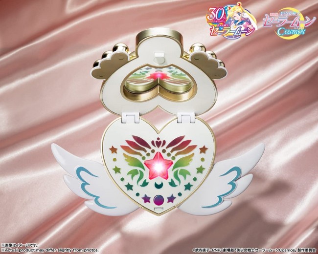 Action Figure (Completed Action Figure, Movable) Silver Moon Crystal Power Makeup! The "Eternal Moon Article" from the movie version of "Sailor Moon Cosmos" has been sculpted for the first time as a completely new figure! PROPLICA, which pursues "authenticity" in its products for adults, is proud to announce the first appearance of the "Eternal Moon Article" from the movie version of "Sailor Moon Cosmos" in the PROPLICA line! With Kotono Mitsuishi's voice recorded especially for this product, the song and BGM from "Sailor Moon Cosmos" the Movie, sound effects and luminous gimmicks, you can relive and enjoy the movie! Released in June 2023, the movie version of "Sailor Moon Cosmos" will depict the final chapter of the series, the "Shadow Galactica Arc". The final story of the strong and beautiful Sailor Senshi will be depicted in the "Shadow Galactica Arc", the final chapter of the series. You can relive the scenes from the play with this 1/1 scale figure. The size of the figure was calculated from the scene in the movie and faithfully reproduced at approximately 1/1 scale. High-quality plated finish and clear parts. Gold plated finish specially formulated for this product. The clear parts are also a highlight of the product, which have been detailed and sculpted based on the setting of the play. A dedicated pedestal for display is included. Designed to resemble the transformation scene. Can be displayed either closed or open. Newly equipped with a light-emitting continuous mode! LEDs inside the compact emit light in time with background music and voice. A new mode is available to keep the LEDs glowing for a certain period of time at the touch of a button! The LEDs will continue to fire for a certain period of time at the touch of a button, allowing you to take your time and enjoy shooting. You can enjoy the light emission even when the lid is closed! The clear outer lid allows the light from the inner LEDs to penetrate through the clear parts, so you can enjoy the LEDs even when the lid is closed. Voice for sleep mode! If you leave the power on after playing, a special voice will be played after a certain amount of time has elapsed. Newly recorded voice by Kotono Mitsuishi! Newly recorded voices by Kotono Mitsuishi are included. You can enjoy the largest amount of newly recorded voices of Eternal Sailor Moon/Usagi Tsukino, including "Silver Moon, Crystal, Power Makeup! A variety of songs and background music! Included are not only the transformation BGM, but also the opening song and BGM during the movie from the movie "Sailor Moon Cosmos"! You can enjoy the moving music from the movie! [Reproduce the transformation scene with sound effects from the play! Included sound effects from the movie version of "Sailor Moon Cosmos"! You can relive the movie with the sound effects of the transformation scene and the opening and closing of the compact. Total length Approx. 150mm Material Acrylic, ABS Set Contents Main body Pedestal Manual and instruction manual Button battery LR44X3 (for testing) (C) Naoko Takeuchi (C) Naoko Takeuchi, PNP / "Sailor Moon Cosmos" the Movie Production Committee Images are for illustrative purposes only. Please note that some images and illustrations of the products may differ from the actual products. Please note that products that have been on sale for a long time may no longer be produced or sold. Please note that product names, release dates, prices, and other information on this website is subject to change. (From Bandai website)