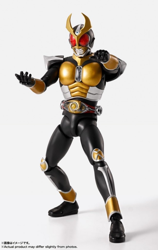 Action Figure (Anime/Sci-Fi Character) “Awaken, your soul.” To commemorate Kamen Rider Agito's 25th anniversary, the S.H.Figuarts (True Bone Sculpting Method) series welcomes Kamen Rider Agito Grand Form as a new 25th Anniversary Ver.!! Originally released in 2015, the “S.H.Figuarts (Shinkocchou Seihou) Kamen Rider Agito Grand Form” returns as a 25th anniversary commemorative product, featuring a reinterpreted and redefined color scheme based on the suit's appearance in the series. This special edition includes a light-up head part and a 25th anniversary commemorative base, bringing “that soul” back to life in the Shinkocchou Seihou series. The on-screen color scheme has been reinterpreted and redefined, refreshed with deeper, richer tones. Includes specialized wrist parts for posing, enabling the recreation of signature Agito poses. Using the interchangeable wrist parts allows for recreating the pose just before charging up for the Rider Kick. Includes a head part for displaying the Cross Horns extended. Enables recreating the appearance after the head's Cross Horns deploy during a special move activation. The “natural articulation” unique to the True Bone Sculpting Method allows for realistic recreation of the Rider Kick pose, just like in the series. Newly included “Light-Gathering Head Part”. Light gathered at the back of the head causes the compound eyes to glow! Includes a special base featuring the ‘Kamen Rider Agito’ 25th Anniversary logo! Product Specifications Total Height Approx. 145mm Material PVC, ABS Set Contents ・Main Body ・3 pairs of interchangeable hand parts (left/right) ・Interchangeable head part (light-gathering) ・Cross Horn deployment head part ・Dedicated base Appearing in Kamen Rider Agito (C) Ishimori Productions, Toei Images are for illustrative purposes only. Please note that product images and illustrations may differ slightly from the actual product. Please note that products released some time ago may no longer be in production or available for sale. Please note that information on this website, such as product names, release dates, and prices, is subject to change. (From the Bandai website)