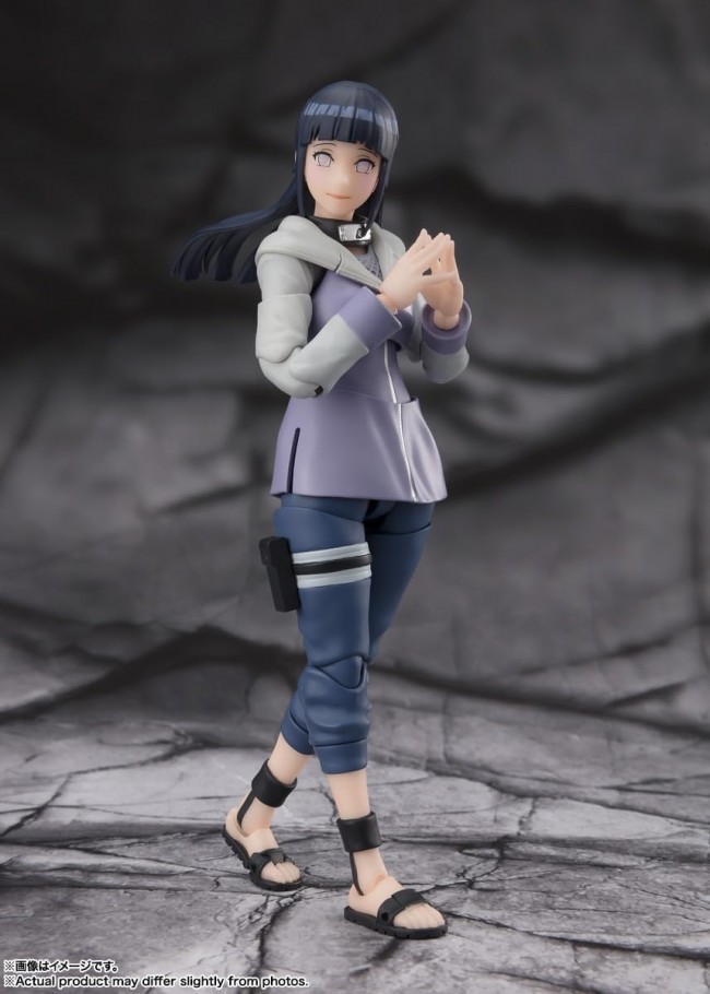 Action Figure (Completed Action Figure)  From the S.H.Figuarts “NARUTO” series comes a figure of Hinata Hinata!  She comes with four replaceable expressions, including a smiling face and a blank stare, as well as optional parts for Hinata's signature expression! Hinata's signature ninjutsu, “Juubu Soushiken” effect parts are included as optional parts, as well as “Fluttering Hair” parts to recreate impressive scenes from the Pain battle. A replaceable facial expression for when Naruto becomes enraged and is captured by the Nine Tails is also included in the set!  Not only battle scenes, but also Hinata's typical facial expressions and wrist parts are also included. The set includes not only battle scenes, but also Hinata's typical facial expressions and wrist parts, allowing you to enjoy a variety of different Hinata figures.  Hinata's signature ninjutsu, “Juubou Soushiken” effect parts are included, allowing you to recreate Hinata's powerful battle scenes.  I love you, Naruto-kun...” Hinata's expression, wrists and optional parts are included to recreate the famous scene where she risked her life to save Naruto's life!  You can also recreate the story of the Battle of Pain by using the replaceable expression parts from S.H.Figuarts Uzumaki Naruto [Sennin Mode] -The Savior of Kinoha who inherits his master's will (sold separately).  Height Approximately 135mm  Material ABS, PVC  Set Contents Main body 5 replacement wrist parts (left and right) 4 replacement facial parts Interchangeable hair parts (front and back hair) Set of optional parts (Juubou Soshiken) [Bonus parts] Replacement parts for S.H.Figuarts Uzumaki Naruto [Sennin Mode] -Savior of Kinoha who inherits his master's will- (sold separately)  Series name Naruto Shippuden  (C) Masashi Kishimoto, Scott / Shueisha, TV Tokyo, Pierrot  The image is for illustrative purposes only. Please note that some images and illustrations of the products may differ from the actual products. Please note that products that have been on sale for a long time may no longer be produced or sold. Please note that product names, release dates, prices, and other information on this website is subject to change.  (From Bandai website)