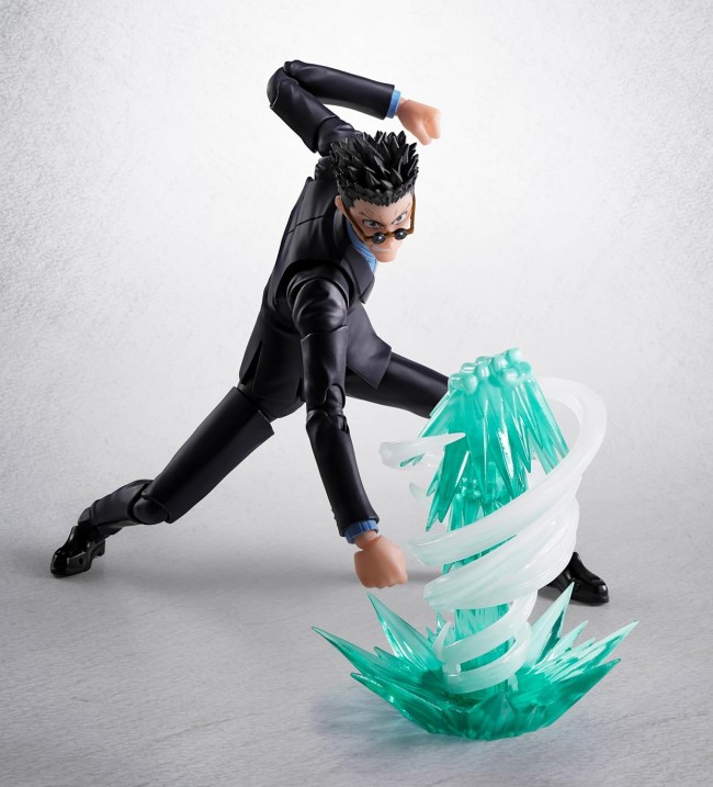 Action Figure (Pre-Painted, Articulated) From ‘HUNTER×HUNTER’, S.H.Figuarts presents “Leorio”!  In addition to a wide range of expression parts to recreate everyday and battle scenes, it includes an effect part sculpted with impactful detail to depict the Nen ability he unleashed on Jin during the “Election Arc”!  “Please!! Save Gon!!” S.H.Figuarts brings “Leorio” to life in his “Election Arc” outfit! Includes “replacement pocket parts” to recreate his signature hands-in-pockets pose, enabling natural, Leorio-like posing!  Includes effect parts recreating Leorio's Nen ability, first seen in the “Election Arc”! Features clear parts and an impactful design where wind and shockwaves are integrated as part of his arm.  Includes interchangeable wrist parts holding a cell phone, allowing you to recreate phone call scenes from the “Phantom Troupe Arc” or “Election Arc”! *The block is not included in the set.  Includes 4 interchangeable expression parts: an intense “screaming face” and the distinctive “crying face” expressing joy at Gon's full recovery.  Collect and play with the separately sold “S.H.Figuarts Gon,” “S.H.Figuarts Killua,” and “S.H.Figuarts Kurupika”!  Product Specifications Total Height Approx. 170mm  Material PVC, ABS  Set Contents ・Main Body ・Interchangeable Hand Parts: Left 3 types, Right 5 types ・Interchangeable Facial Expression Parts: 4 types ・Interchangeable Pocket Parts (Left/Right) ・Nen Ability Effect Parts  Appearing in HUNTER×HUNTER  (C)P1998-2025 (C)V・N・M  Images are for illustrative purposes only. Please note that product images and illustrations may differ slightly from the actual product. Please note that products released some time ago may no longer be in production or available for sale. Please note that information on this website, such as product names, release dates, and prices, is subject to change.  (From the Bandai website)