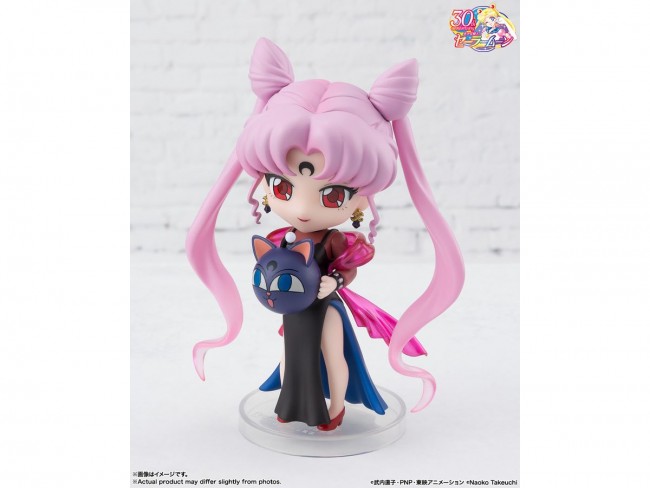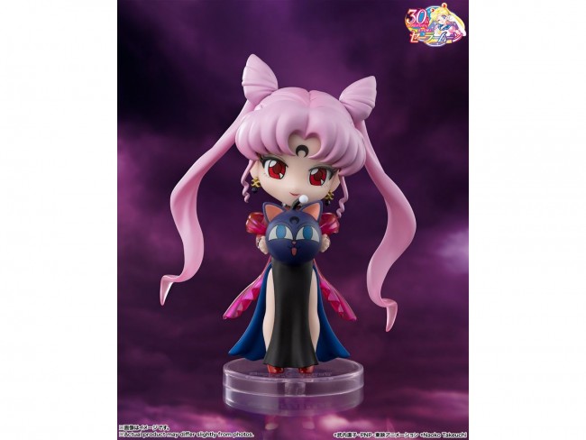 Action Figure (Completed Action Figure, Movable)  Chibi-Usa's transformed form by the power of the evil black crystal, the Queen of Darkness “Black Lady”, is now available as a Figuarts mini figure!  The charm of the character has been condensed into a palm-sized deformed figure. From the TV anime “Sailor Moon R” comes a Figuarts mini figure of the Queen of Darkness, “Black Lady,” the form into which Chibi-Usa was transformed by the power of the evil black crystal!  The charm of the character has been condensed into a palm-sized deformed figure. She also comes with a Lunar P-Ball in Black Moon's version!  Height Approximately 90mm  Material PVC, ABS  Set Contents Main body Replacement arm parts Stand set  Series name Bishoujo Senshi Sailor Moon Series  (C) Naoko Takeuchi, PNP, Toei Animation (C) Naoko Takeuchi  The image is for illustrative purposes only. Please note that the images and illustrations of the products may differ from the actual products. Please note that products that have been on sale for a long time may no longer be produced or sold. Please note that product names, release dates, prices, and other information on this website is subject to change.  (From Bandai website)