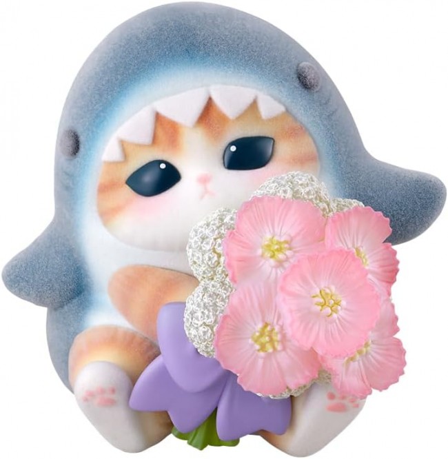 Completed Figure A figure brand featuring mofusy flocky and transparent colorful bouquet of flowers From “mofamofy” comes a new mofusand “Shark Nyan”! She has a fluffy flocky texture and a colorful bouquet of flowers with a sense of transparency, It features a flocky mofusy texture, a bouquet of transparent colorful flowers, lovely moist eyes, and a chubby form. Surrounded by a lot of flowers while feeling the warmth of “mofumofu”... This is a figure brand that brings such healing to your daily life. The flowers used in the bouquets are decorated with The flowers used in the bouquets are based on the honest and mischievous figure often depicted in Sharkyan's four-frame comic strip manga. The flowers used in the bouquet are nadeshiko and kasumisou, which have the meanings of innocence and purity of heart in the language of flowers, as depicted in the four-frame cartoons by Same-nyan. Works mofusand Main Product Contents Main body Main product materials PVC, ABS, nylon Product Size Height: approx. 90mm (C) mofusand The actual product may differ slightly from the image on this page. *The color of the image on this page may slightly differ from the actual product. (From Bandai website)