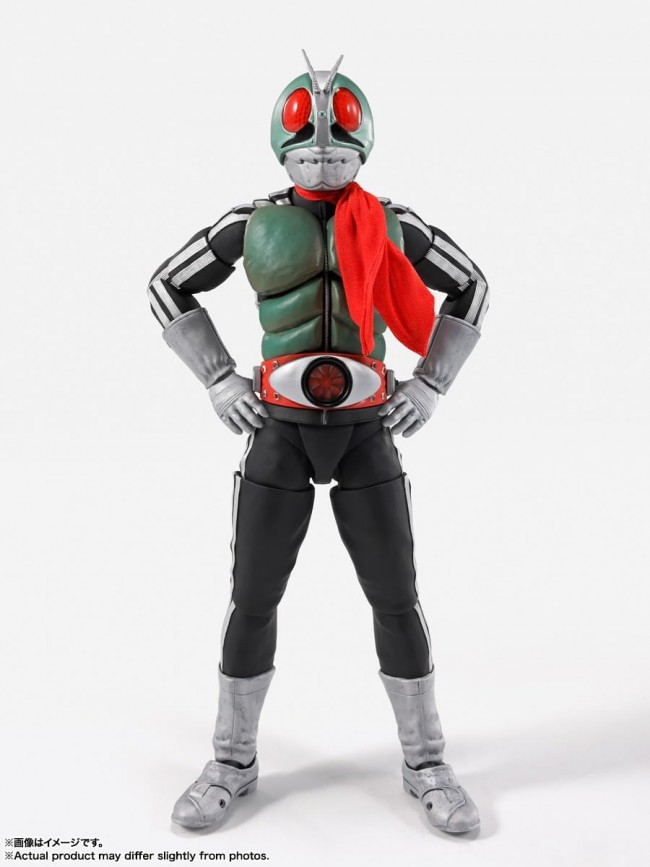 Action Figures (Anime/Science Fiction Characters)  Rider Transforms! Masked Rider Shin Ichi-go, who fought against Shocker for human freedom, returns to the S.H.Figuarts (S.H.Figuarts) series as a glorious Showa Rider edition!  The “S.H.Figuarts (S.H.Figuarts) Masked Rider Shin-1” is back in a glorious Showa Rider edition, with reinterpreted and redefined coloring and a new scarf made of cloth from the neck up! New wrist parts and a PVC muffler for replacement are included in this rich set. To commemorate the start of the glorious Showa Rider Edition, a “Tachibana Racing Club” mark pedestal is also included for the first time only.  Sculpted from the skeleton, the figure faithfully reproduces the “Masked Rider New No. 1” as it appeared in the “Masked Rider” play when it was first broadcast. In addition, the coloring from the play has been reinterpreted and redefined to create a new, deeper shade of color.  The muffler, including the part wrapped around the neck, has been reproduced entirely in cloth material to new specifications, in pursuit of a natural look as in the film. The cloth part hanging from the neck can be made expressive by the built-in wire, which allows the muffler to be fluttered in the wind.  New replacement wrist parts are included for the “hands on both hips” pose that only Showa Rider can achieve. It is possible to recreate a heroic standing posture.  Wrist parts are also included for the “pointing at opponent” pose that is so popular with Showa Rider. The range of reproduction of scenes from the show can be greatly expanded.  A PVC muffler and neck parts are also included for replacement. The cloth muffler and PVC muffler can be selected according to the various actions and scenes in the show.  The PVC muffler comes in two versions: hanging or fluttering, allowing for different poses of Masked Rider New No. 1.  Wrist parts for the “S.H.Figuarts Akaranger Super Squadron 50th Anniversary Ver.” (sold separately) are also included. The handshake of the first hero representing Kamen Rider and Super Sentai is reproduced!  To commemorate the start of the glorious Showa Rider Edition, a limited edition stand featuring the logo of the “Tachibana Racing Club” is included.  Combine with the S.H.Figuarts Kamen Rider New No. 2 Glorious Showa Rider Edition (sold separately) to recreate the famous Double Rider scene and display on the pedestal!  You can also display it on a pedestal with the “Masked Rider New Cyclone-Go (Masked Rider) Glorious Showa Rider Edition” (sold separately)! You can also display it with the combination of Masked Rider and exclusive machine!  Height Approximately 145mm  Material PVC, ABS, cloth  Set Contents Main body 6 left wrist parts and 7 right wrist parts for replacement Spare antenna parts 2 replacement PVC muffler parts Neck parts for PVC muffler parts  Limited Edition] Exclusive pedestal  Series name Masked Rider  (C) Ishimori Production, Toei Co.  The image is for illustrative purposes only. Please note that the product images and illustrations may differ from the actual product in some cases. Please note that products that have been on sale for a long time may no longer be produced or sold. Please note that product names, release dates, prices, and other information on this website is subject to change.  (From Bandai website)