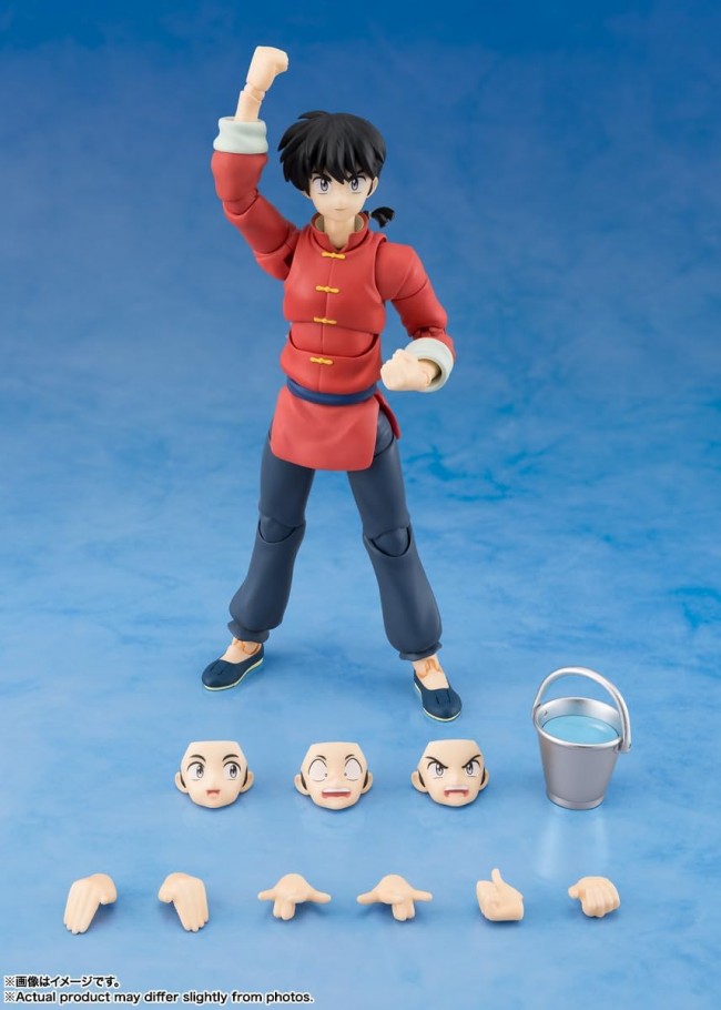 Action Figure (Pre-Painted, Articulated) The globally beloved ‘Ranma 1/2’ series arrives in S.H.Figuarts!  From the globally beloved TV anime ‘Ranma 1/2’, Ranma Saotome arrives in S.H.Figuarts! Sculpted based on visuals from the new anime, it includes new wrist parts and expression parts, plus a bucket as an optional accessory representing the series' world!  Perfectly recreate the poses of “Ranma Saotome”!  Includes a wide range of articulation and wrist parts to faithfully recreate his iconic poses!  Features a wide range of articulation to handle various fighting scenes as a practitioner of the Saotome-ryu Indiscriminate Fighting Style.  Wide articulation and soft-touch parts allow smooth action poses!  Includes 3 interchangeable expression parts: standard face, smiling face, gag face, and 2 left/4 right interchangeable wrist parts. The bucket is also included as an optional accessory.  Product Specifications Total Height Approx. 140mm  Material PVC, ABS  Set Contents ・Main Figure ・Interchangeable Wrist Parts (2 types for left hand, 4 types for right hand) ・Interchangeable Facial Expression Parts (3 types) ・Bucket  Appearing in Ranma 1/2  (C)Rumiko Takahashi・Shogakukan/Ranma 1/2 Production Committee  Images are for illustrative purposes only. Please note that product images and illustrations may differ slightly from the actual product. Please note that products released some time ago may no longer be in production or available for sale. Please note that information on this website, such as product names, release dates, and prices, is subject to change.  (From the Bandai website)