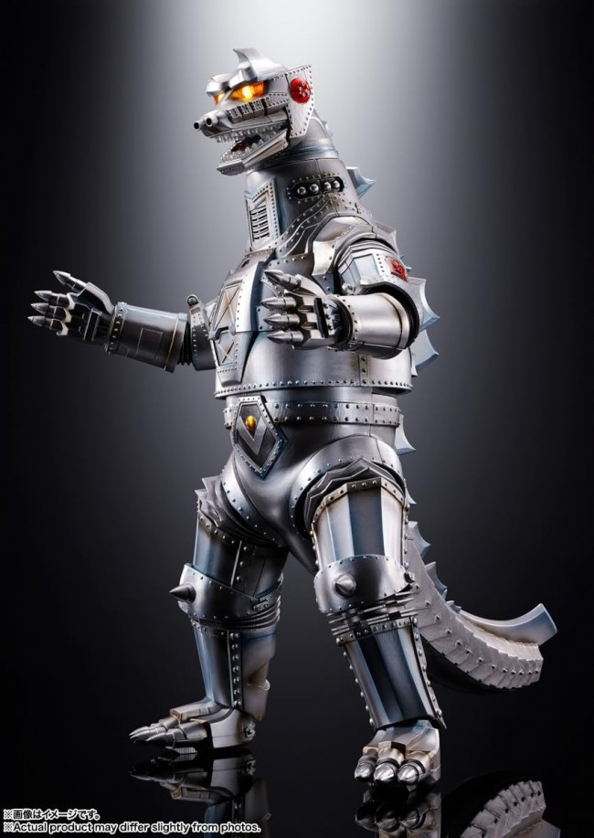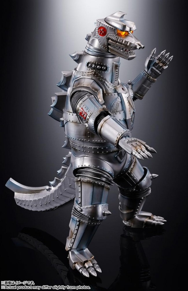 Action Figures (Animation/Science Fiction Characters) Glows! It rumbles! It roars! Celebrating the 50th anniversary of Mechagodzilla's appearance, Mechagodzilla goes out as a DX Soul of Chogokin! The 270mm-tall superalloy body incorporates LEDs and a voice IC. The dorsal fins are used as an activation switch, and when the power is turned on, both eyes light up with the sound of Mechagodzilla's appearance! It roars! Space Beam" sound while both eyes emit multi-colored light! Cross Attack Beam" sound as the internal LEDs light up in conjunction with the chest hatch deployment! and many other features of Mechagodzilla are reproduced with sound and light. The head and tail can be replaced to recreate the flying form. The 270mm tall first Mechagodzilla appears as a DX Soul of Chogokin! Built-in LED and voice IC. BGM, attack sounds, cries, and LED emissions can be triggered by pressing the dorsal fin! This is the ultimate item to commemorate the 50th anniversary of the release of the movie "Godzilla vs. Mechagodzilla! Speakers are built into the slit-like detail on the neck. The background music "Mechagodzilla Appears", which can be called Mechagodzilla's theme song, is played! Multi-colored LEDs built into both eyes flash and emit light along with the "Space Beam" sound! Mechagodzilla's dorsal fins are used as switches to activate various audio and light-emitting gimmicks. Power ON/OFF is also controlled by the dorsal fin switch. The switches are designed to be inconspicuous on the exterior. The head can rotate 360 degrees. Both eyes emit light in the same way no matter which way the head is turned. The famous "simultaneous front and back attack" scene from the movie can be reproduced. All body joints are movable. The characteristic bellows joints of the legs are reproduced with separate parts. The "cross-attack beam" firing device is reproduced inside the chest hatch. The hatch opens with a dorsal fin switch, and LEDs light up in conjunction with the hatch to produce the "Cross Attack Beam" sound! The space beam, cross-attack beam, squeal and missile attack sound can be simultaneously triggered with BGM! Relentless all-arms attack is reproduced! When the attack switch on the dorsal fin is pressed and released, the sound of the explosion of a bullet landing on the target is heard, adding to the realism of the attack! The metallic appearance of the robot monster is reproduced with silver paint and multiple shadow colors. The characteristic riveted details of the robot's entire body are realistically reproduced using a slide mold. Spring-action spring-operated wrist switches allow the palms of the hands to be turned sideways with a crisp motion. The dorsal fin switch also makes a "finger missile" firing sound. A display base modeled after the stand at Mechagodzilla's "Gyokusendo Secret Base" is included. Reproduce the "flight form" by replacing the head and tail. The head in flight form also has light-emitting eyes. A dorsal fin switch can be used to produce flight sounds! Height Approx. 270mm Material Die-cast, ABS, POM Set Contents Main body Head for flight mode Tail for flight mode Display base set Title Godzilla vs. TM & (C) TOHO CO. The image is for illustrative purposes only. Please note that the product images and illustrations may differ from the actual product in some cases. Please note that products that have been on sale for a long time may no longer be produced or sold. Please note that product names, release dates, prices, and other information on this website is subject to change. (From Bandai website)
