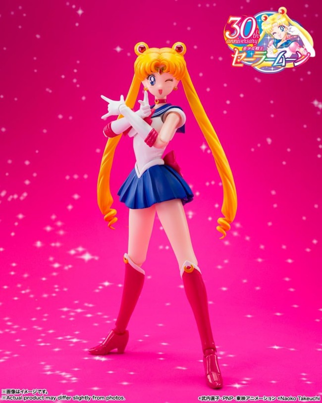 Action Figure (Pre-Painted, Articulated) Sailor Moon, adorned with the Crystal Star Compact, arrives from Pretty Guardian Sailor Moon R! Featuring all-new articulation and sculpting, plus a gorgeous new paint job! Sailor Moon, with a completely redesigned sculpt including her proportions, arrives wielding the Crystal Star Compact and Cute Moon Rod! She perfectly recreates the iconic pose from the TV anime Sailor Moon R's opening sequence! Luna comes along too! Luna's neck moves left/right and up/down. Turning her head sideways gives her a prim and proper look. Moon Princess Halation can also be recreated! This deluxe set includes 4 interchangeable left and right wrist parts for poses like “Punishment in the Name of the Moon” and the “Hip-Bump” pose, the Cute Moon Rod, Luna, and a dedicated display stand! Product Specifications Total Height Approx. 140mm Material PVC, ABS Set Contents ・Main Figure ・4 types of interchangeable left and right hand parts ・3 types of interchangeable expression parts ・Cutie Moon Rod ・Luna ・Dedicated Base Set Appearing in Pretty Guardian Sailor Moon Series (C)Naoko Takeuchi・PNP・Toei Animation (C)Naoko Takeuchi Images are for illustrative purposes only. Please note that product images and illustrations may differ slightly from the actual product. Please note that products released some time ago may no longer be in production or available for sale. Please note that information on this website, such as product names, release dates, and prices, is subject to change. (From the Bandai website)