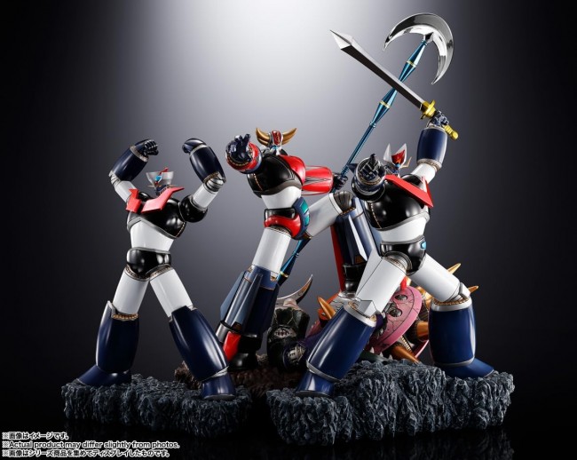 SF/Anime Characters (Completed Figures, Fixed Poses) Following “UFO Robot Grendizer” and “Steel Jeeg,” the third installment in master sculptor Tomonobu Fuchi's dynamic robot series is the Double Mazinger?a set featuring both “Mazinger Z” and “Great Mazinger”! Each Mazinger stands independently, allowing you to freely combine and display both units. Enjoy diverse display options, from the two titans standing side by side to them standing back-to-back. Beyond the red chest radiator plates of the Double Mazinger, the Great Mazinger's sword, the “Mazinger Blade,” features a beautiful plated finish: silver for the blade and gold for the guard. Create the Double Mazinger's heroic combination with your own hands! Following “UFO Robot Grendizer” and “Steel Jeeg,” the third installment in the dynamic robot series by master sculptor Tomonobu Fuchi is the Double Mazinger, a set featuring both Mazinger Z and Great Mazinger! The height to the top of the head, including Mazinger Z's base, is approximately 195mm. The “Breast Fire” emitters on both chest plates feature a red plated finish. It stands tall in a heroic pose, ready to unleash its deadly Breast Fire attack. The height to the top of the head, including Great Mazinger's base, is approximately 210mm. In addition to the red plating on the chest “Breast Burn” emitters, the sword “Mazinger Blade” held in its left hand features beautiful plating: silver on the blade and gold on the guard. The bases for Mazinger Z and Great Mazinger are separate, allowing you to freely combine and display them. Enjoy diverse display variations, such as the two heroes standing side by side or standing back-to-back. Display alongside the first release, “UFO Robot Grendizer” (sold separately), to recreate the Dynamic Super Robots trio standing together! Product Specifications Total Height Approx. 195mm (Mazinger Z) Approx. 210mm (Great Mazinger) *Height measured from head to base. Material PVC, ABS Set Contents ・Mazinger Z (includes base) ・Great Mazinger (includes base) ・Collection Sheet Appearing in Dynamic Characters (C)Dynamic Planning Images are for illustrative purposes only. Please note that product images and illustrations may differ slightly from the actual product. Please note that products released some time ago may no longer be in production or available for sale. Please note that information on this website, such as product names, release dates, and prices, is subject to change. (From the Bandai website)
