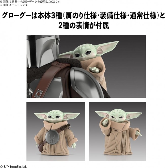 The Mandalorian and Grogu from the new STAR WARS film THE MANDALORIAN AND GROGU are now available in 1/12 scale character line figures! ■The Mandalorian features newly sculpted parts including Beskar armor (left thigh), left hand, and main gun belt, recreated to match the new film. ■Grogu comes with three variants: standard state, new armor state, and shoulder-riding state. ■ Assembly primarily uses snap-fit connections. 【Accessories】 ■ Custom Blasters ×2 types ■ Spear ×1 ■ Dark Saber ×1 ■ Gradius ×1 ■ Cloak ×1 ■ Hand Parts ×1 set ■ Joint Parts ×1 set ■ Selectable Parts ×1 set ■ Custom Display Base ×1 ■ Decal ×1 ※Please note that product photos and illustrations may differ slightly from the actual product. ※Please note that products released some time ago may no longer be in production or available for sale. ※Please note that information on this webpage, including product names, specifications, release dates, and prices, is subject to change. ※Package, logo, and product specifications are subject to change without notice. (From the Bandai website)