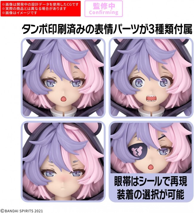 The new sister “30MS SIS-J00 Merunja [Color A]” joins the “30 MINUTES SISTERS” series! ■Includes a character base body, 3 tampo-printed expression parts, and weapon parts as a complete set. ■Face parts feature rich expressions achieved through tampo printing. Color separation inside the mouth is reproduced via part segmentation. ■Includes a 3D sticker to recreate the eye patch. ■Choose between 2 sleeve shapes by swapping parts. ■The hood is removable via part replacement. ■The “30 MINUTES SISTERS” series features face parts, hairstyle parts, and body parts available for each body section. Combine with separately sold parts to create your ideal sister. ■Uses the 30 MINUTES LABEL standard 3mm joint. Parts from other series can be attached as optional accessories. 【Included Items】 ■Face Parts (Tampo Printed) ×3 types ■Hand Parts ×1 set ■Weapon Parts ×1 set ■Decals ×1 set ※Please note that product photos and illustrations may differ slightly from the actual product. ※Please note that products released some time ago may be discontinued. ※Please note that information on this webpage, including product names, specifications, release dates, and prices, is subject to change. ※Package, logo, and product specifications are subject to change without notice. (From the Bandai website)