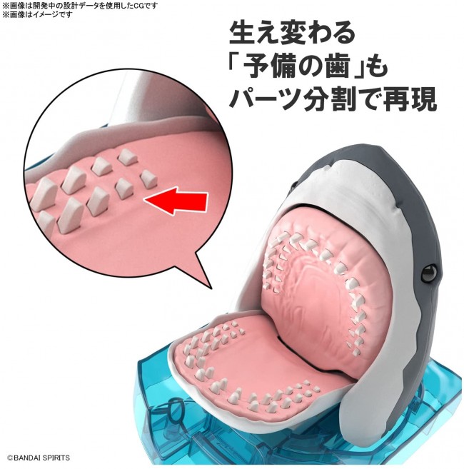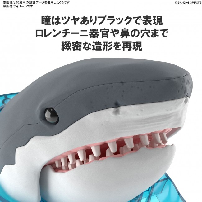Plastic model The second "Exploring Lab Nature" is the Great White Shark! Three-dimensional with modeling that reproduces the internal skeleton and opening action! ■ By pushing the switch, the link mechanism including the head skeleton is activated. You can enjoy the opening action with the movement of the skeleton that imagines the real thing. ■ Reproduce the "dental battery" structure such as spare teeth that show the characteristics of sharks whose teeth are constantly changing! ■ The elastic mouth reproduced with TPE material expresses wrinkles on the upper chin. ■ Glossy black is used for the hollow eyes. Precise modeling featuring the head, including the Lorenzini organ at the tip of the nose and the nostrils. ■ The spray of water, which has the image of the water surface, is composed of clear parts. ■ By specializing in the head, attention is paid to detailed expressions. 【accessories】 ■ Instruction manual x 1