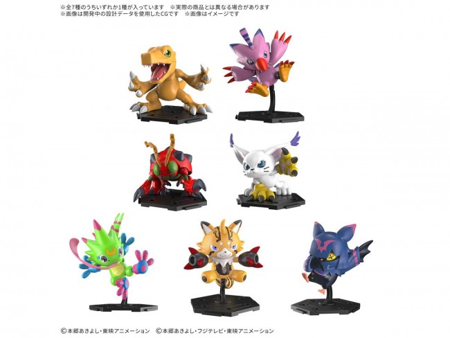 The Digimon Gathering series, where bonds deepen with every build, launches its first installment! ■Closed box packaging features all 7 types: Agumon, Piyomon, Tentomon, and Tailmon from Digimon Adventure, and Gekkomon, Prismon, and Kilopmon from Digimon Beat Break. ■All parts are pre-painted. (No stickers required) ■A plastic kit that lets you recreate Digimon just by assembling the parts. 【Included Items】 ■Dedicated base ※Please note that product photos and illustrations may differ slightly from the actual product. ※Please note that products released some time ago may no longer be in production or available for sale. ※Please note that information on this webpage, such as product names, specifications, release dates, and prices, is subject to change. ※Package, logo, and product specifications are subject to change without notice. (From the Bandai website) Collect all types in 1 BOX!