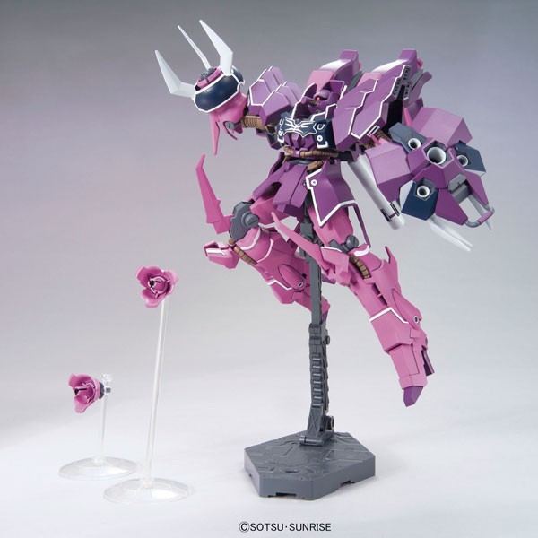 Plastic Gundam Model Assembly Kit (High Grade) The large machine equipped with an Incom, which also plays an active role in "Mobile Suit Gundam UC episode 6". The distinctive form and volume of the rose motif are faithfully reproduced. A variety of action gimmicks such as the Incom and Psycho Jammer. Various poses are possible. Binders of two machines in the back can be opened and closed. ■Incom pedestal is included. Molded × 12, foil stickers × 1, assembly instructions × 1 (C) Sotsu, Sunrise (From Bandai website)