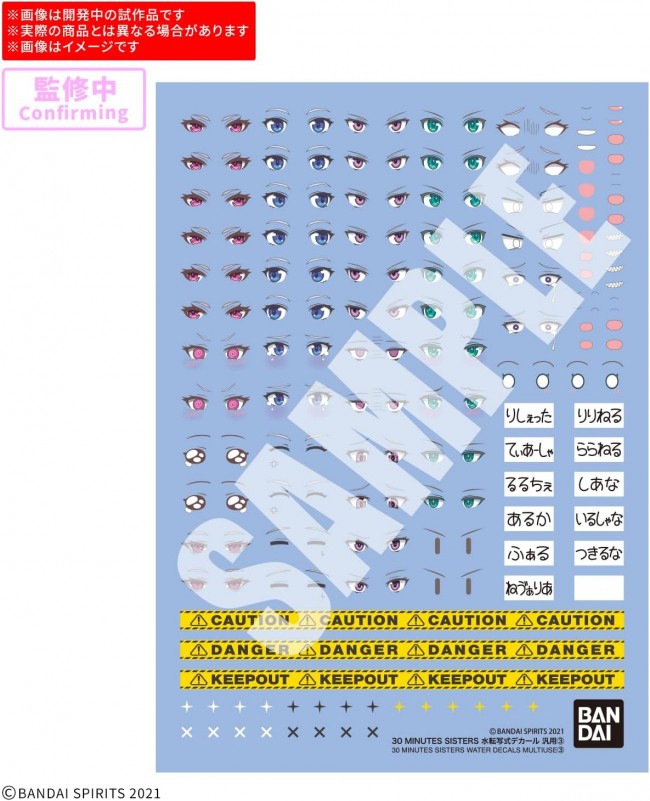 The third installment of universal water-slide decals from the 30MS series is here! ■ Use with the unpainted face parts included in the separately sold “30MS Option Parts” series to create character expressions. ■ Also includes a wide variety of other water-slide decals. 【Contents】 ■Water-slide decals ×1 ※Please note that product photos and illustrations may differ slightly from the actual product. ※Please note that products released some time ago may be discontinued or no longer available for purchase. ※Please note that information on this webpage, including product names, specifications, release dates, and prices, is subject to change. ※Package, logo, and product specifications are subject to change without notice. (From the Bandai website)