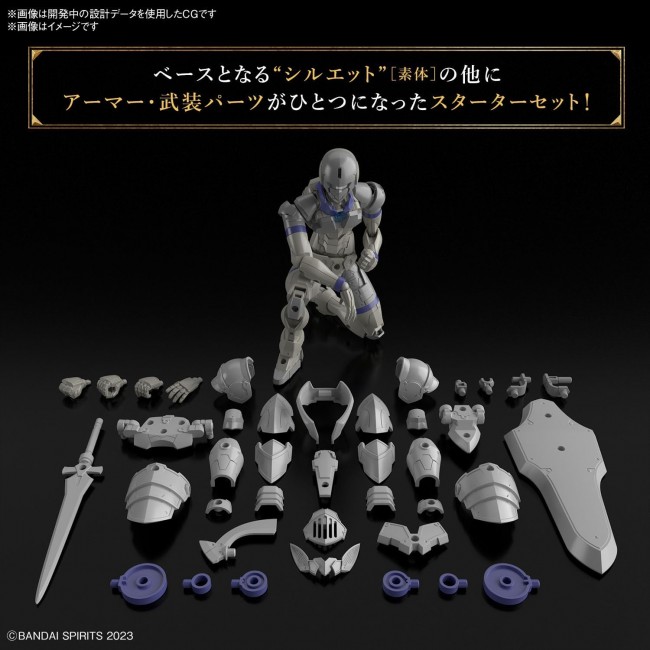 From the new plastic model series "30 MINUTES FANTASY", in which you can create your own fantasy job, comes the "Rebel Knight"! The starter set includes the base "silhouette" (body), armor and armament parts in one package. The "Silhouette" [bare body] allows for flexible human-like actions and can be used for all kinds of jobs. Movable axes in the head and neck allow for chin-pulling and face-protruding poses. Newly designed shoulder joints allow for bold poses without compromising the lines of the body. Movable axes for the chest, torso and hips work in tandem with a sliding mechanism at the base of the hip joint to create natural poses. Armor and armament parts are included for "job change" to "Lieber Knight" by combining with the "Silhouette" (bare body). Shoulder and waist armor can be attached via joints on the back to create a new mechanism that allows for flexible movement. Sword and shield can be mounted on the back and waist by using joint parts. Element core's attribute is "water". Different face design and coloring from the "Silhouette" and "Knight" of the Rosean Empire sold separately. [Accessories] Sword × 1 Shield × 1 Armor parts × 1 set Hand parts × 1 set Joint parts × 1 set *Please note that some of the photos and illustrations of the products may differ from the actual products. *Please note that production and sales of products that have been on the market for some time may have been terminated. *Please note that product names, specifications, release dates, prices, and other information on this web page are subject to change. *The package, logo, and product specifications are subject to change without notice. (From Bandai website)