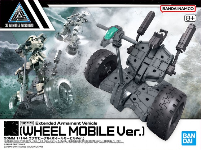 Highly customizable mobile type “Wheelmobile Ver.” appears in the 30MM Exa Vehicle series! Reproduce two forms of wheel mode and hovering mode by recombining parts. Two types of wheels are included, one large and one small. Can be boarded with existing aircraft sold separately. By replacing the parts, you can change the position of the grip. Display with movement is possible by using the “Action Base 7” sold separately. [Accessories] Vehicle × 1 set *Please note that some of the photos and illustrations of the product may differ from the actual product. *Please note that products that have been on the market for some time may no longer be produced or sold. *Please note that product names, specifications, release dates, prices, and other information on this web page are subject to change. *The package, logo, and product specifications are subject to change without notice. (From Bandai website)