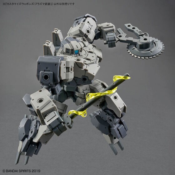 A plasma armament set of electrical armaments that can be carried by the series aircraft is now available! Various weapon forms can be created depending on the combination of the attached parts. Blade parts can be selected from normal state or electrified state. Includes slap parts that were included in the [30MM 1/144 Optional Backpack 1] and other parts. [Accessories]. Plasma saw × 1 set Plasma cutter × 1 set Plasma knife × 1 set Stun baton × 1 set Long grip×1 set Hand parts ×1 set *Please note that some of the photos and illustrations of the products may differ from the actual products. *Please note that products that have been on the market for some time may no longer be produced or sold. *Please note that product names, specifications, release dates, prices, and other information on this web page are subject to change. *The package, logo, and product specifications are subject to change without notice. (From Bandai website)