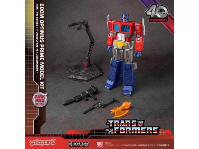 Optimus Prime" from the "Transformers" series! He has appeared since the animated film, the first movie, and fought a long battle against the evil organization Destron as the supreme commander of Cybertron. Includes 1 Ion Blaster, 1 Walther P38, 1 Energy Axe, and 1 display stand. The Matrix, which is passed down to the leader of Cybertron, is removable. 【Transformers 20cm Optimus Prime】 Body length: 200mm Fully painted (with damage paint) Eyes glow blue with gimmick. Battery for head (eyes): 3V CR927 x 1 *Battery sold separately Includes a magnet in the ion blaster. Partially die-cast Adhesive and tools are not required. The product is a non-deformation model.