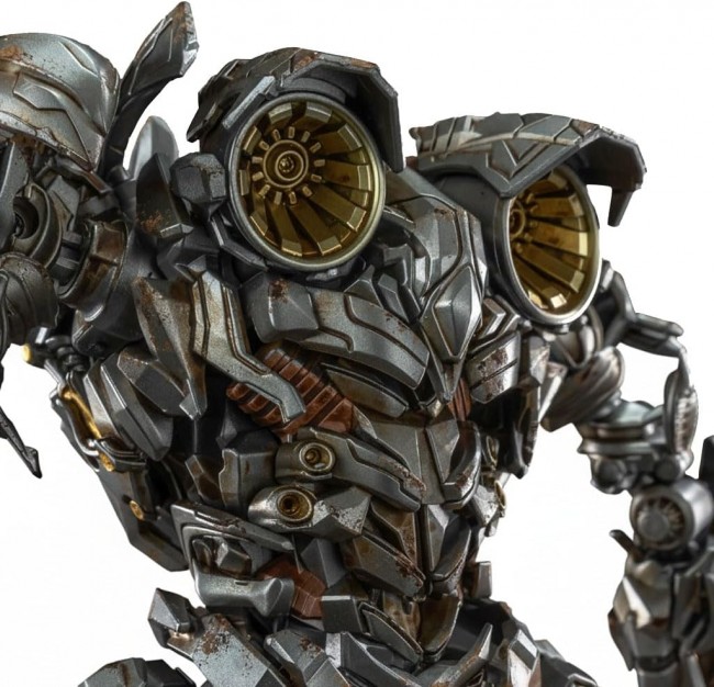Megatron from the 2009 movie “Transformers: Revenge of the Fallen” makes his appearance. Includes: Megatron body ×1, hand parts (with movable fingers) ×1 set, Fusion Cannon ×1, Energon-shaped display stand ×1. A substantial assembly kit. Features light-up effects for the eyes and Fusion Cannon, offering three illumination modes! Articulated joints and a linked system in the back and legs enable dynamic movement and posing! ■Body Length: 220mm ■Fully painted (includes weathering effects) ■Features light-up gimmick ■Batteries required: LR621 1.5V × 4 (batteries sold separately) ■Partially die-cast construction ■No glue or tools required ※This product is a non-transforming model. ※Subject to change during supervision; color and specifications may vary.