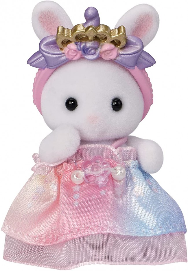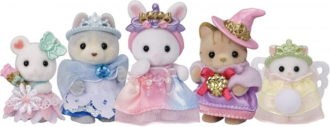 Sylvanian Families is a series of dollhouses featuring cute animal dolls living in Sylvanian Village. It nurtures children's imagination and creativity, family ties, and kindness to friends. Set of babies in princess dresses. Includes a Snow Princess husky baby, a Unicorn Princess white rabbit baby, and many other cute princesses. Each comes with the perfect tiara and other accessories. [Set includes. Baby White Rabbit (Unicorn Princess), Baby Husky (Snow Princess), Baby Striped Cat (Magical Princess), Little Marshmallow Mouse (Flower Princess), Little Persian Cat (Fairy Princess), Unicorn Catsuit Snow Tiara, Magical Hat, Fairy Tiara, Butterfly Earrings, Flower Wand (C) EPOCH