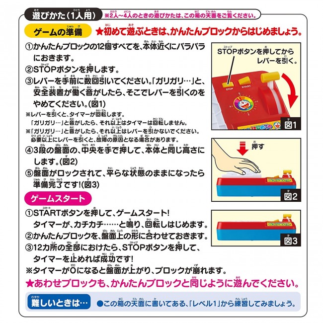 It is a puzzle game where you can enjoy shaping together shapes. There are two kinds of "Easy Block" to play from a 3 year old child and "Adjustable Block" which is a bit more difficult.