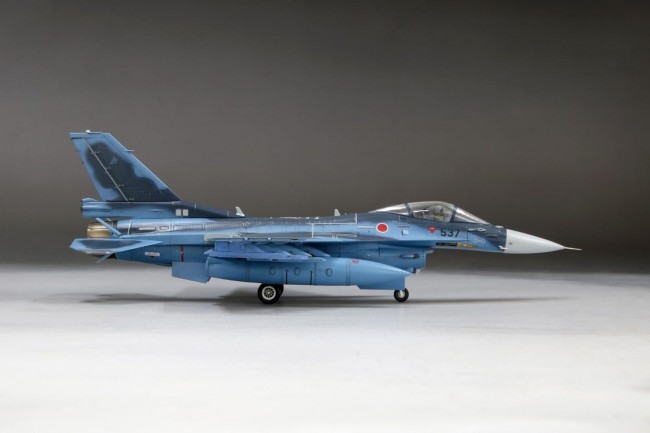 The F-2 fighter jet of the Japan Air Self-Defense Force continues the lineage of Japan's first domestically produced jet fighter, the F-1. It was developed with an unwavering commitment to domestic production, overcoming external pressures and numerous twists and turns. While its appearance resembles the American-made F-16, the similarities are few. The aircraft incorporates entirely Japanese-developed technologies, including a digital fly-by-wire control system reflecting the results of CCV (Control and Configuration Variation) research, a phased array radar and fire control system, and large main wings made of carbon fiber materials. Designed for a single pilot to operate its complex systems, the F-2A serves as a multi-role fighter capable of diverse missions, from anti-ship missile operations to ground attack. It continues to play a vital role on the front lines of national defense. This product includes one pilot figure wearing the JASDF standard helmet, in addition to the standard components. The figure is sculpted to perfectly fit the F-2's uniquely sloped rearward seat, delivering a highly realistic finish. Series Name 1/72 Scale Jet Aircraft