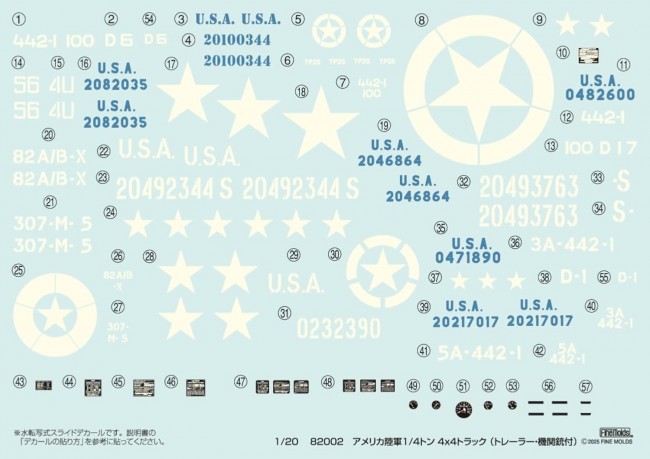 Revival production of a classic kit from the past. Originally released in the early 1980s, Fine Molds released a revival of this kit in 2011 with some parts changed/added. The trailer, M2 heavy machine gun, and other accessory parts that were not included in the kit at that time have also been reissued and newly released. The front grille will be a choice of two types of pressed grille/slat grille molds manufactured by Fine Molds.