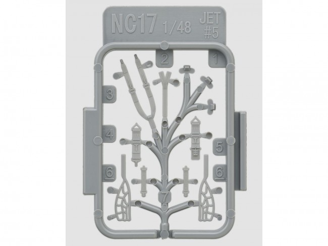 This set includes the seat belts used in the Lockheed C-2 ejection seat and the cockpit rearview mirror for the F-104 fighter jet. It is widely adaptable not only for the F-104 but also for seats installed in jet fighters from the 1950s. Although made of plastic, the seat belts offer flexibility that allows them to be freely bent and twisted with fingers or tweezers, while also being resistant to snapping. This allows it to smoothly conform to the seat contours of the aircraft. It can be used with plastic model adhesives and paints, and the paint adhesion provides the excellent finish characteristic of plastic. Furthermore, there is no concern about paint chipping where the parts are held with tweezers, a common issue with metal parts. Series Name 1/48 Scale Nano Aviation Series