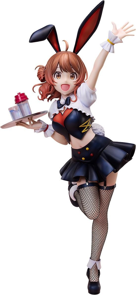 Completed Figure My dream is to beat my big sister! From ‘The Idolmaster Cinderella Girls’, “Hanami Yume” arrives as a 1/4 scale figure! Featuring an original bunny girl costume drawn exclusively for this release, her energetic smile has been brought to life in three dimensions. In her right hand, she holds a tray bearing the familiar “SSD (Super Stamina Drink)”, recreating her signature energetic pose as if delivering vitality to attendees. The bunny costume features a combination of glossy and matte finishes, while the real fabric fishnet stockings add a realistic presence. Be sure to welcome her alongside the separately scheduled “Himezaki Riha Bunny Ver.”. This is part of the 1/4 scale “BIG SIZE” figure series, represented by “BUNNY GIRL”. The imposing scale creates a powerful sculpt, and this captivating bunny girl will captivate you. Product Specifications Title The Idolmaster Specifications Plastic, Pre-painted Figure 1/4 Scale Includes dedicated base Total Height: Approx. 455mm Prototype Sculptor Kazuki Nishio Painting Matsuda Model Production Cooperation Dragon Craft Manufacturer FREEing Distributor Good Smile Company THE IDOLM@STER TM& (C)Bandai Namco Entertainment Inc. Important Notes About the Product The photos shown are of sample products. Actual product specifications may differ in part. As the painting process is done by hand, each product may exhibit slight variations. Please be aware of this in advance. The base and support pillars are prototypes. They may differ from the actual product. (From the Good Smile Company website)
