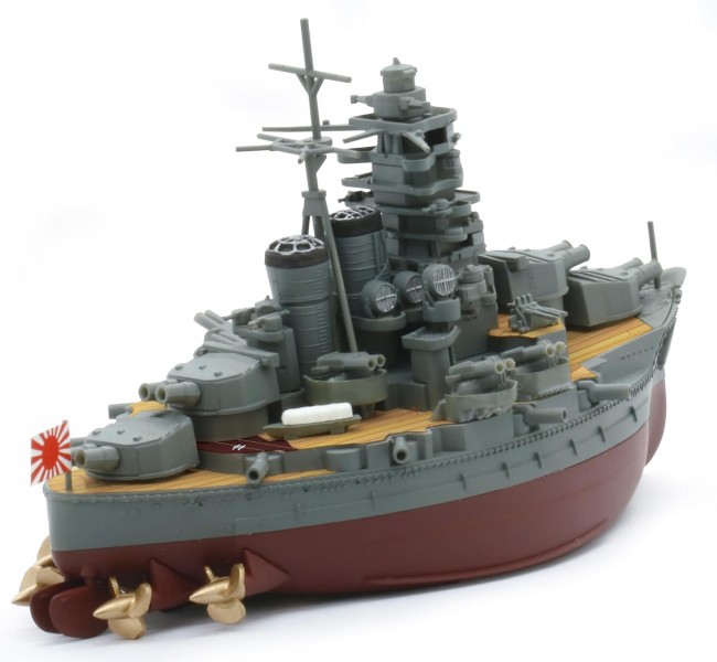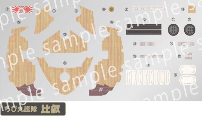 Chibi Maru Hiei: The Cute, Deformed Version Returns! The Chibi Maru Fleet series features stylized designs, creating adorable palm-sized figures you'll want to collect. Snap-fit construction requires no glue, while multi-color molding and realistic decals eliminate the need for painting. The hull is split between the main body and keel section, allowing assembly as either a surface type or full-hull type. Enjoy it even more with the separately sold dedicated base. Easily assemble and recreate the adorable stylized Hiei. This product is based on the Hiei of the 3rd Squadron, which participated in the Third Battle of Solomon Islands in 1942. Special parts recreate the difference between the Kirishima's main guns, whose side armor plates were curved, and the Hiei's main guns, which used flat plates. It recreates the appearance around the final period, featuring anti-aircraft machine guns mounted below the bridge. The difference in searchlight tower placement is also realistically reproduced. The hull bottom is molded in hull bottom color, while the upper hull is in warship gray. The deck sections use highly conforming realistic decals, allowing the intricate moldings to be perfectly reproduced even without painting. The decals include a wooden deck with a complex woodgrain pattern, the warship flag, bridge windows, searchlight lens surfaces, and waterproof covers. A dedicated name decal for the Hiei is included.