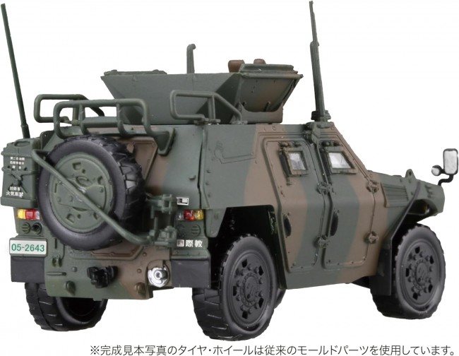 Real Mold Specification featuring “Plastic Wheels/Rubber Tires with Additional Dedicated Molds” exceeding typical 1/72 scale reproduction Basic Features & Specifications ・Product is 1/72 scale, 2-vehicle set, recreating the Light Armored Vehicle equipped with spare tires and armor plates assigned to the International Activity Education Unit (Komagate Station). ・Assembled Size: (approx.) 62 x 31 x 45 mm (with antenna mounted) ・The hull is a single-piece molded part incorporating the front, sides, and top using a slide mold. ・The front lighting assembly is reproduced with a separate transparent part. ・The rear lighting features a separate transparent lens part. ・The glass is a separate snap-fit part. ・The rear hull is a separate part. By opening the blind holes, you can choose whether to equip the accessory parts. ・The difference between the anti-slip treated and untreated areas on the hull surface is expressed with detailed surface engraving. ・The interior is reproduced with multiple separate parts. ・The seat (backrest) is a separate part. ・The floor and interior are separate parts, reducing the need for paint separation during assembly. ・The gun mount hatch features an open/closed selection specification. ・The gun mount is designed integrated with the ballistic shield, enabling 360-degree rotation even after assembly. ・Includes the 5.56mm MINIMI machine gun for mounting on the gun mount and the ballistic shield parts. ・The EMPI is a separate part, allowing selection between mounted and unmounted specifications. ・The front left and right mirrors are provided as a single part including both rear/under mirrors and their arms. ・The main undercarriage parts consist of 3 components, reproducing the flat yet characteristically textured surface. ・The suspension is a separate part, allowing its shape to be accurately represented without simplification. ・The tow hook is a separate part. The early model without a tow hook can also be reproduced. ・Tires and wheels are integrated plastic parts (This product includes tires and wheels with even higher precision reproduction) ・Tires feature parts depicting their shape deformed under their own weight Features and Specifications Unique to This Product Special parts are provided and shapes are reproduced to represent the Japan Ground Self-Defense Force International Activities Training Unit specification. ・Bulletproof reinforced glass: Includes reinforced window frames/panels for side and rear windows. ・Additional radio mast/antenna: Includes the antenna mast and antenna added above the front door on the vehicle's right side. ・Standard radio mast/antenna: Includes only the antenna masts on the rear left and right sides of the vehicle, each with an antenna-equipped part. ・Roof Rack: Includes rack parts, which are only equipped on some vehicles in the Ground Self-Defense Force. ・Spare Tire Unit: Includes a spare tire and holder mounted on the rear of the vehicle in a backpack-style configuration. ・Roof-mounted gun mount: Includes the 5.56mm MINIMI machine gun with its deflector. ・Machine gun mount: Includes ballistic plates. This integrated part allows 360-degree rotation and is easy to assemble. ・Wire cutter: Included for mounting on the front edge of the roof. ・Field radio: Includes the conventional type radio mounted inside the vehicle. ・Wide-area multipurpose radio: Includes a new, updated digital type radio. ・Fuel can: Includes fuel can parts for loading onto the rear of the vehicle. This special specification product includes the following additional parts: ・Plastic wheels and rubber tires, including spares, for two vehicles. ・Tires/wheels are separate parts, eliminating the need for masking during painting. ・Wheels accurately reproduce the shape difference between mounted and spare states, identical to the standard version. ・Features interlocking ribs in the design to prevent misalignment when combining rubber tires. ・Tires are specialized parts with a finely detailed tread pattern, offering more precise representation than the standard version. ・Made of rubber material for a realistic appearance. ・The tire pattern is the summer tire commonly seen across units from Hokkaido to Kyushu. ・The included decals are exclusive to this product featuring the National Defense Force specification. ・Includes standard markings required for the International Defense Force specification. ・Includes markings required for the white paint scheme used during participation in international peacekeeping operations (PKO). ・Includes vehicle numbers, unit insignia, vehicle panels, cherry blossom insignia, portable fuel can markings, and nationality markings for deployment to Iraq. ・Includes 14 types of vehicle numbers. ・Unit designations include: International Peacekeeping, Medium Rapid Deployment-1, Medium Rapid Deployment-3, 15th Rapid Deployment Unit-Headquarters. ・Includes black cherry blossom insignia, UN markings, and nationality markings for PKO specifications. ・The assembly manual is a dedicated booklet containing assembly diagrams as well as reference materials and explanations about the Light Armored Vehicle. ・Vehicle commentary written by Toshiaki Namie. ・Includes detailed decal application instructions, camouflage paint patterns, and explanations of vehicle detail shapes. 【Contents】 Runners x24・Rubber parts x10・Decals x1・Assembly manuals x2 【Molded Colors】 2 colors total: Gray・Clear 【Design/Mold】Light Armored Vehicle design/mold: 2019. Additional included wheels/tires: 2026 design/mold Planning Cooperation: Monthly Armor Modeling *Parts included in other products of the same series but not included with this product. ・Smoke grenade launcher + antenna + mast ・Smoke grenade launcher only ・Firing position/flagpole ・Non-reinforced glass ・Right side/additional mast + antenna ※Information current as of December 2025. Please note that color